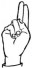 На ћирилици написано КОСТАДИН ВУКИЧЕВИЋ састоји се из 17 слова [?]. Исписано ћириличном једноручном азбуком за глувонеме: